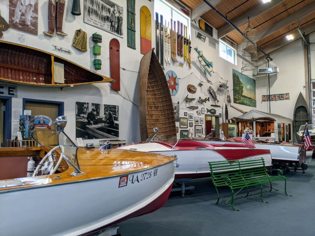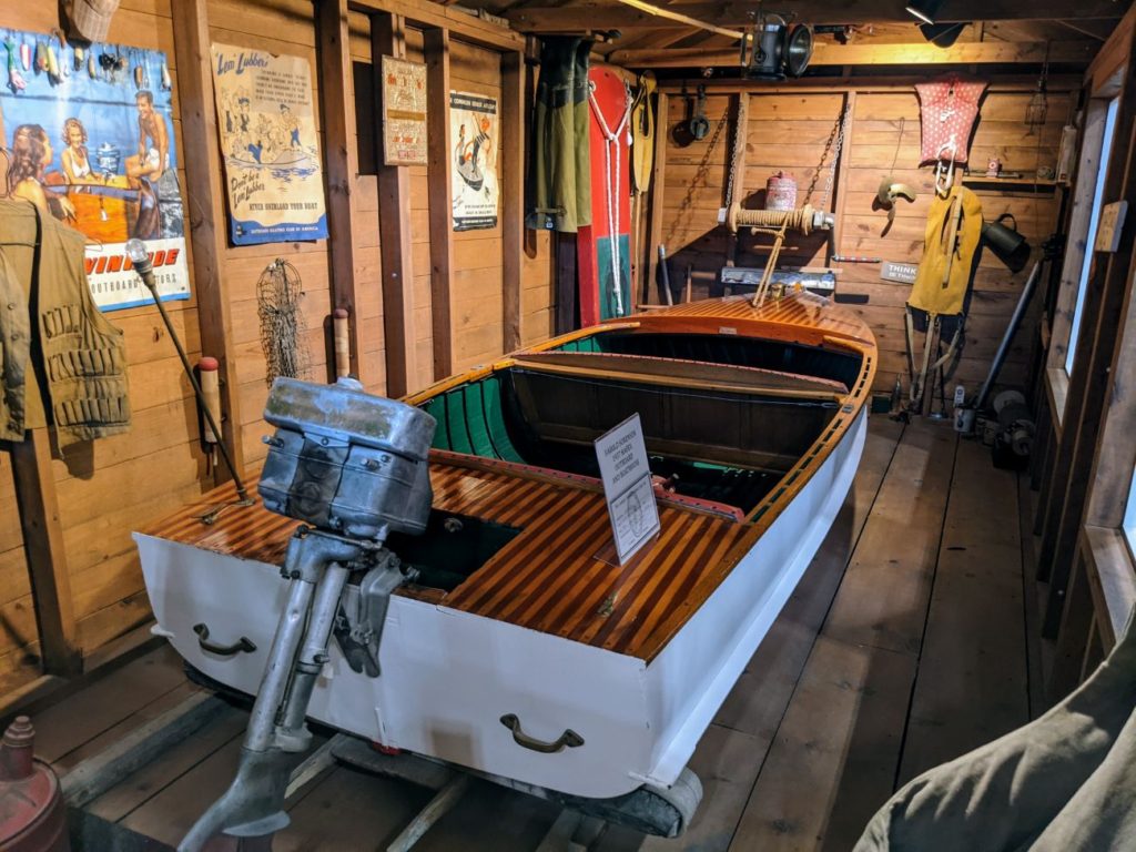 The biggest of the free museums is the Maritime Museum, accessed through a large gift shop/visitors center. This large room holds several beautiful classic boats and historical artifacts from the lake’s history. There is a well-preserved motorboat that was dredged up from the bottom of the lake, a recreation of the town’s first post office and general store, even a cute little “honeymoon” tent in the style of the early 1880’s visitors.