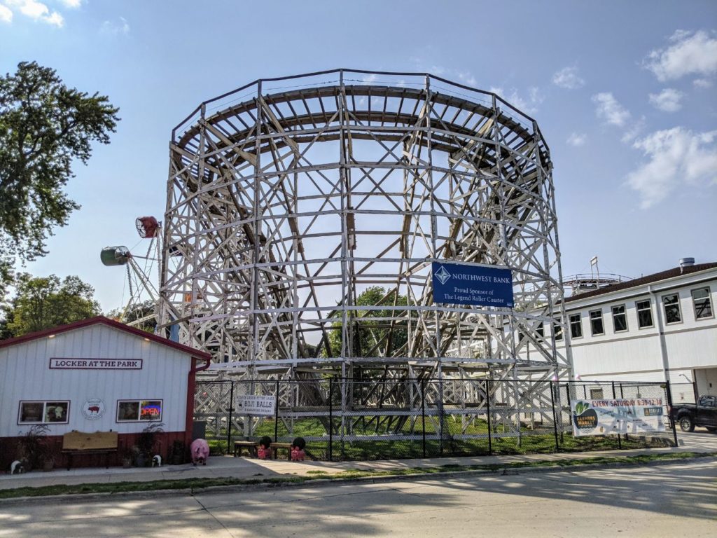 At Arnolds Park, you can pay ~$30 for an all-rides pass or pay per ride. The Legend roller coaster is $8, most of the other thrill rides are $6, and the kid’s rides are $4-5 each. I only paid for The Legend, but I wish I had also done the Wild Mouse and the Log Flume, which would total $20 for all three.