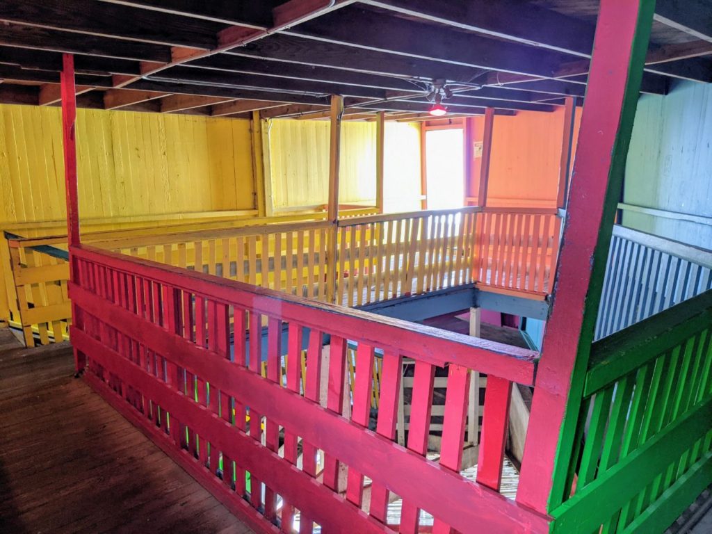 In a room behind the Maritime Museum is the Arnolds Park Museum (accessed by walking around to the side of the building.) Here are some really interesting classic Arnolds Park amusement rides and vehicles. You can slide down a polished wooden slide for $1. Two other turn-of-the-19th-century “rides,” a once-rotating wooden barrel and a spinning wooden bowl, are just for display.