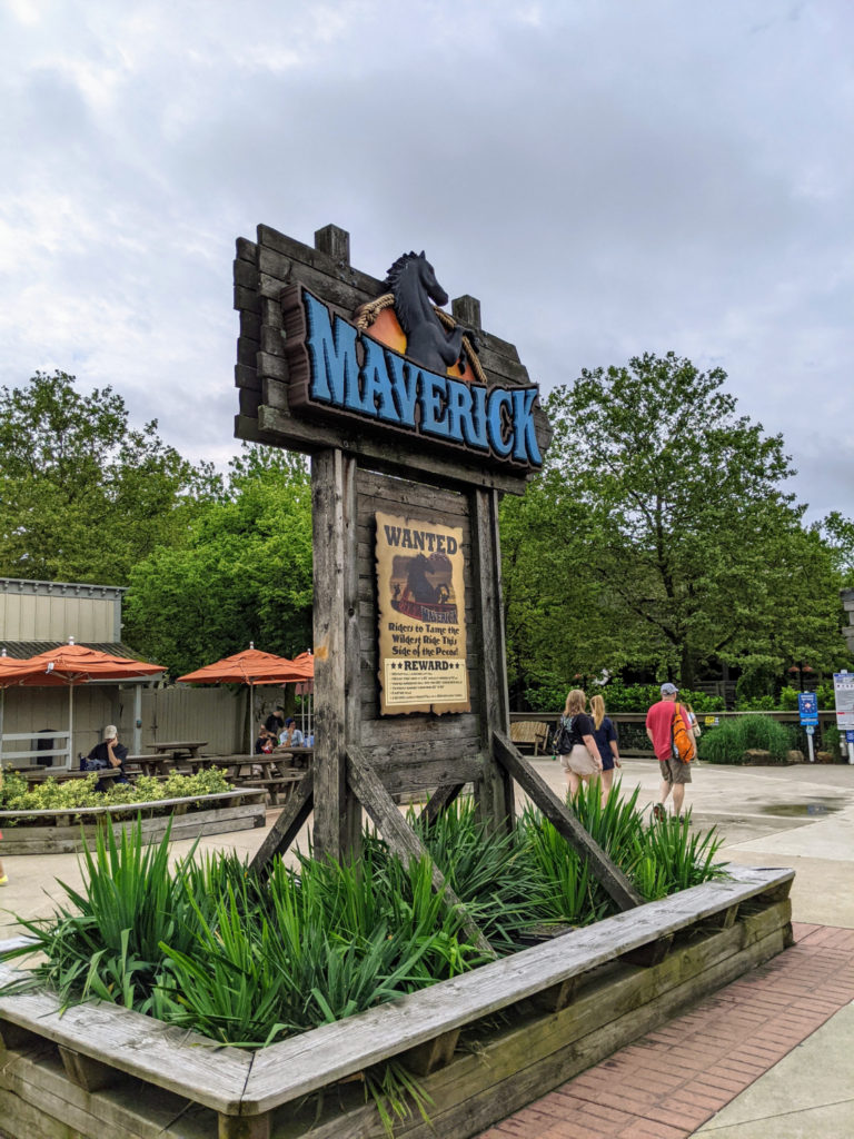 I LOVE the Maverick! It’s not the tallest or fastest anything, but it is a fantastically whippy coaster with two launches and fantastic theming. Maverick really excels at lateral movement, switching your butt from side to side as you careen through rock formations and over water. Not that there isn’t a good drop – the first one will send you 100 feet down at a beyond-vertical 95-degree angle. The trains are comfortable, and you don’t even need a locker for your stuff. My only complaint is that they could use more fans in the queue, though it is almost entirely covered, which is always nice.