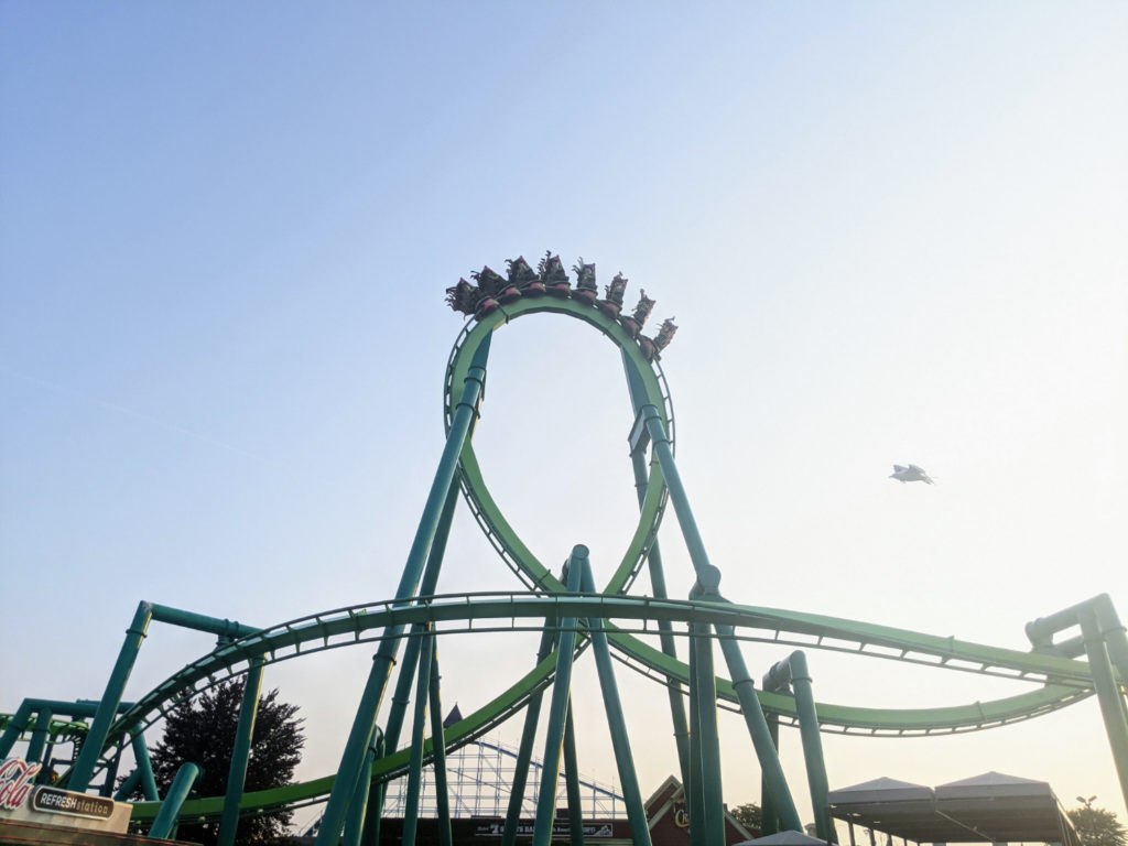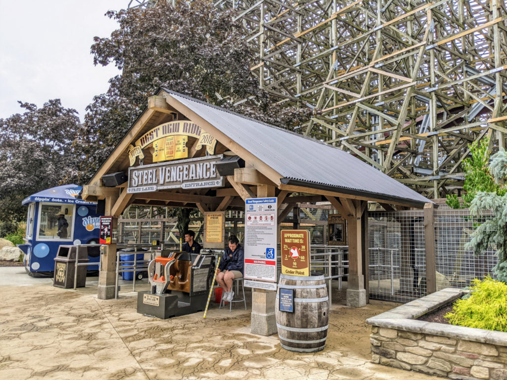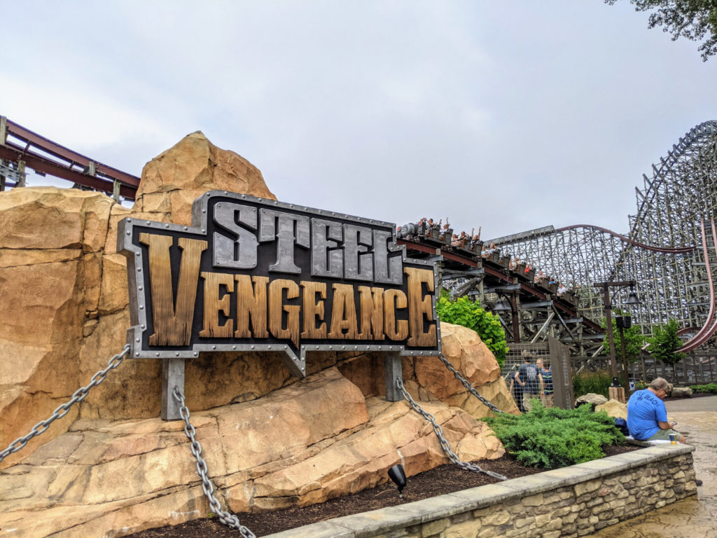 You can easily spend a few hours in line for Steel Vengeance. After a rainstorm, I lucked out once and beat the crowd to only wait 40 or so minutes on my first ride. Another morning, I waited in line for an hour before it opened at 10, then walked on with minimal extra wait time. (But it’s still an hour in line!)