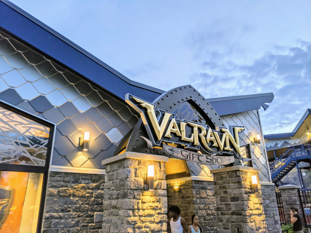 Valravn (pronounced “val-raven,” like the bird – not like something close to “Valvoline,” which is what my brain wants to do) is based on a Dutch myth meaning, “raven of the slain.” The theme is a dark and spooky castle. At least that’s what it feels like when you ride it at night. I like that the first dive nicely faces the open lake, and the rest of the ride is nice and big and swoopy. As a wider B&M coaster, always try to ride on the ends and in the front if you really want that face-down feeling at the top of each of two dives.