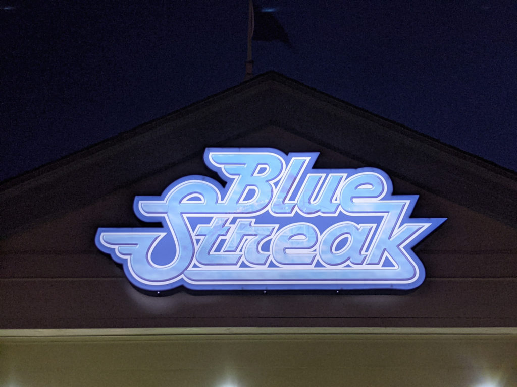 The oldest operating roller coaster at Cedar Point is the Blue Streak, a wooden coaster from 1964. Situated right along the road next to the Marina, it has great views of the bay and the city.