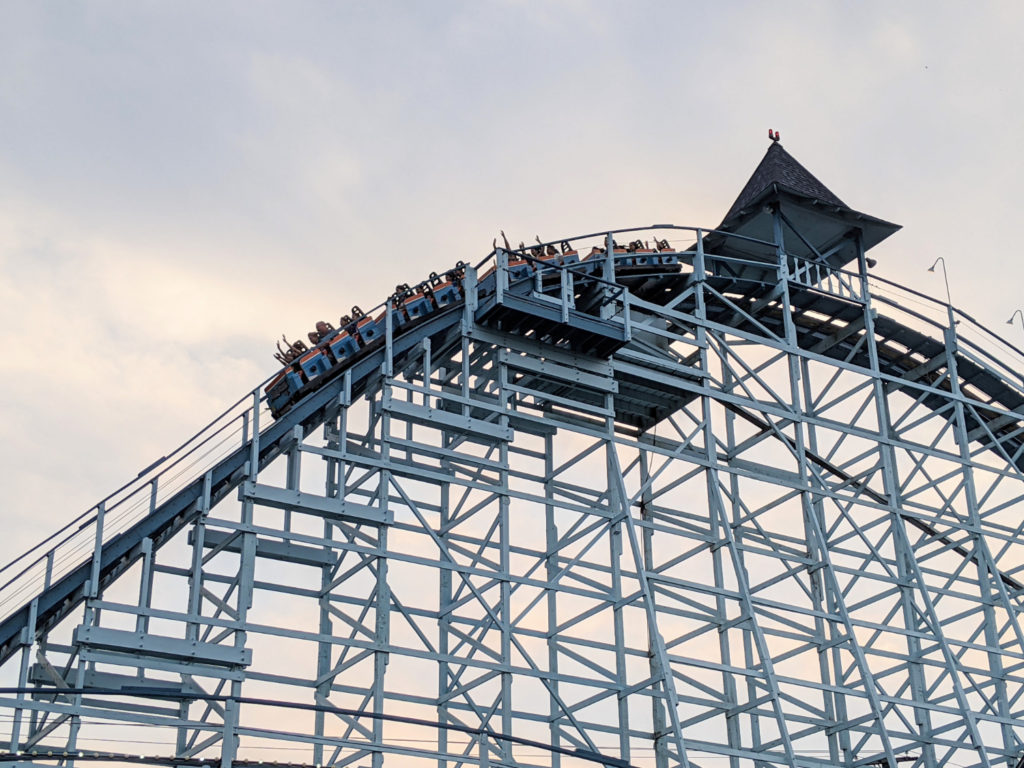 On my only other trip to Cedar Point back in 2007, Magnum XL-200 was my favorite ride in the park, even over Millenium Force (which we got stuck on.) These days, it’s feeling pretty rough in a chunky sort of way. It’s like whole sections of track are off from each other, and you chunk from one to the next. Also, I find the brake run into the farthest pretzel roll to be awkward.