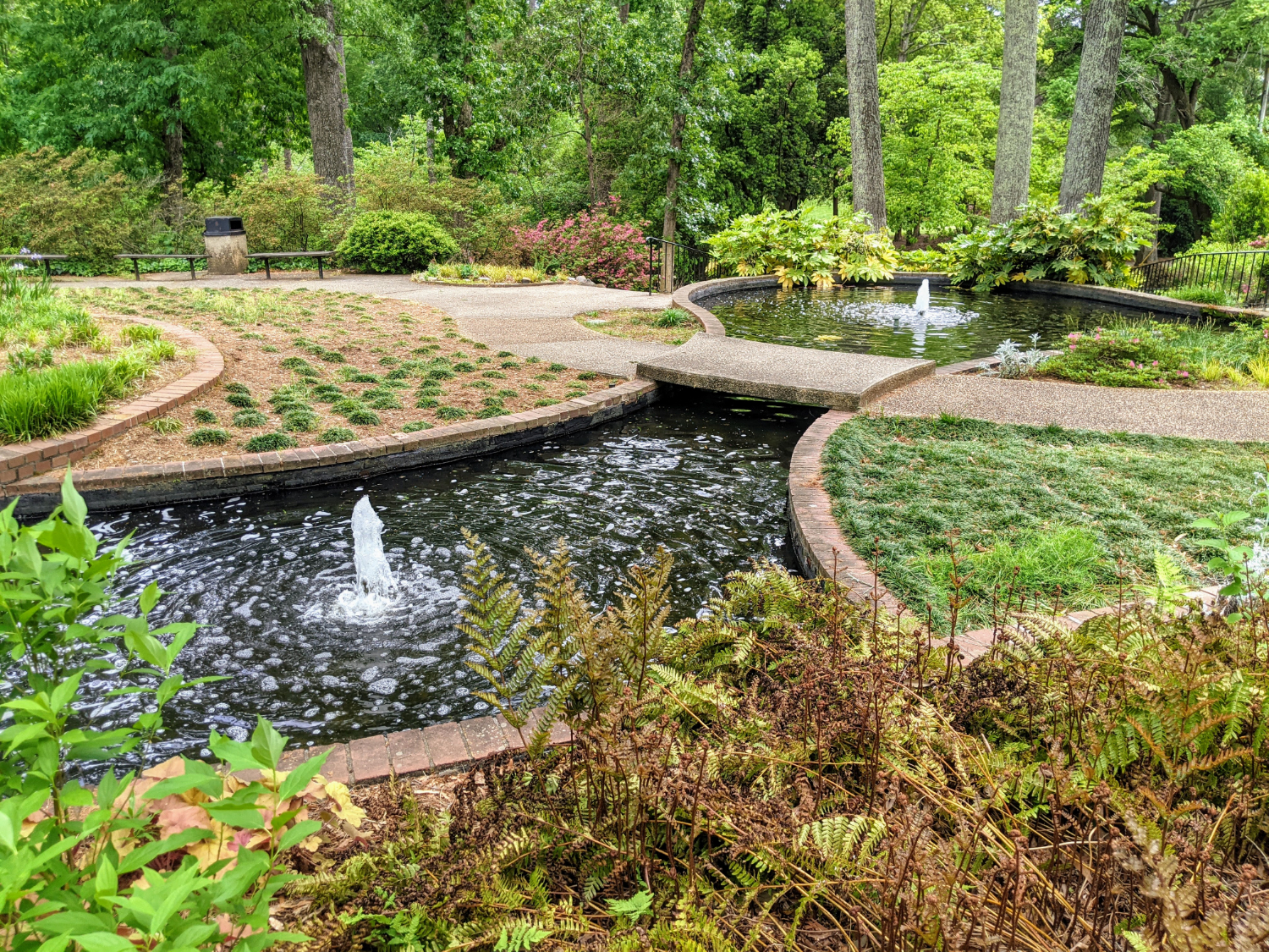Driving around Rock Hill after visiting the Glencairn Garden, it struck me as very Epcot-esque. As in, Disney’s Epcot down in Florida! First of all, there is a large dancing fountain in the center of town just like the Fountain of Nations. It has a “show” – shooting high with different jets in a varied program. It even has that pop when a solid jet of water hits the pool below. (You Disney fans know what I’m talking about!)