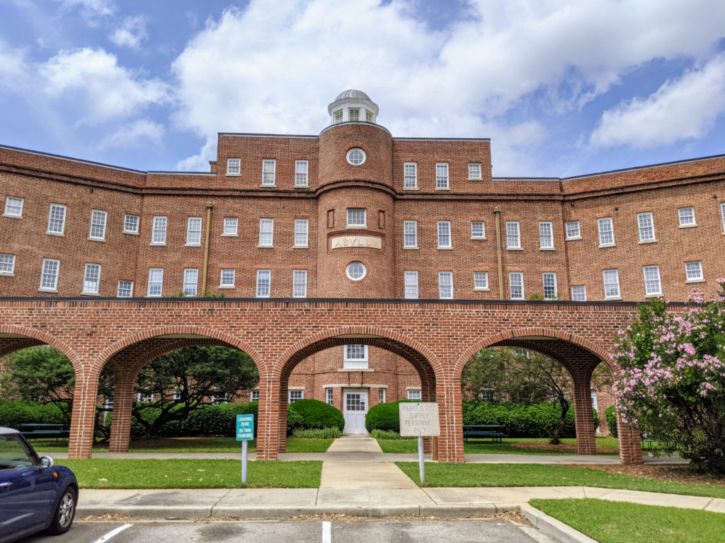 After visiting the Robert Mills House, I got curious about his other buildings. The most prominent other one in Columbia is an asylum built a few blocks away, a large curved building with lots of Mills arches. I think it’s now part of the South Carolina health department, but it looks much the same as when built, more or less.