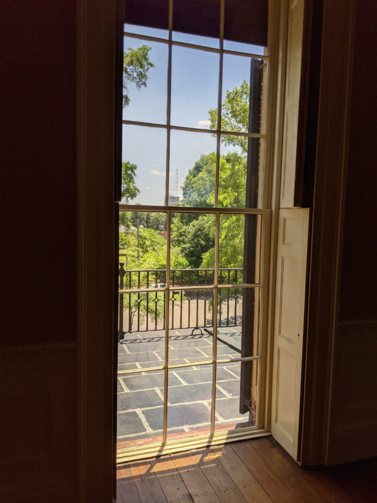 The first house I toured was the Robert Mills House, built in 1823. It is NOT named for the family that lived there! It’s named for the architect, Robert Mills, who also designed the Washington Memorial in D.C. and helped design the White House, among other projects. He was a native South Carolinian and one of the first architects to be trained wholly in the United States (ca. 1802.) Mills was big into neoclassical design – hence the big columns in front – and fond of symmetry and arches.