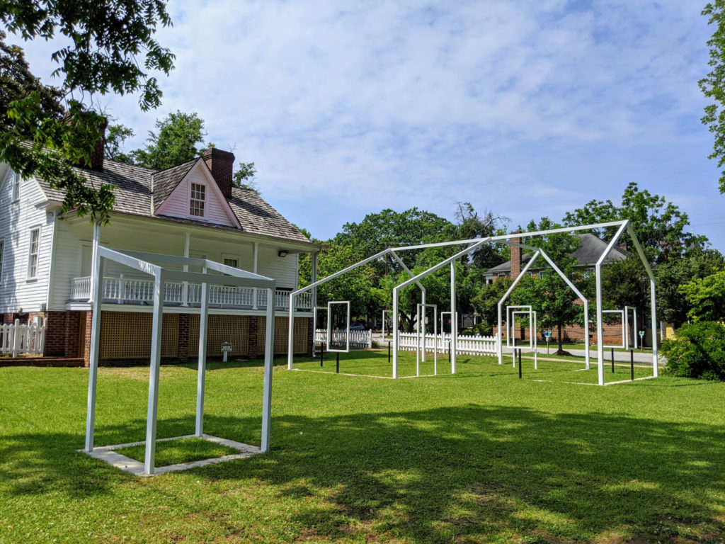 The Mann-Simons house was actually black-owned, and by the same family from 1843-1970. The house is the only building still standing, but over its lifetime, there were several more structures on the lot, some of which are now outlined by “ghost buildings” – white metal outlines that show where the buildings had historically stood.
