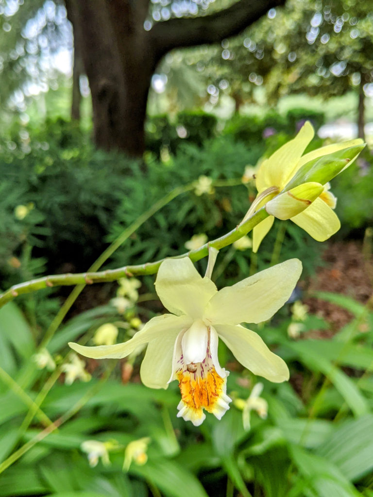 Behind that is a newer section of the gardens on both sides with paths and abundant interesting plants, arbors, and fountains. Some plants they know would have been on the property due to some receipts from a nearby nursery from the time. There are ornamental “monkey puzzle” trees, redwood, persimmon, orchids, gardenias, roses, and so much more.