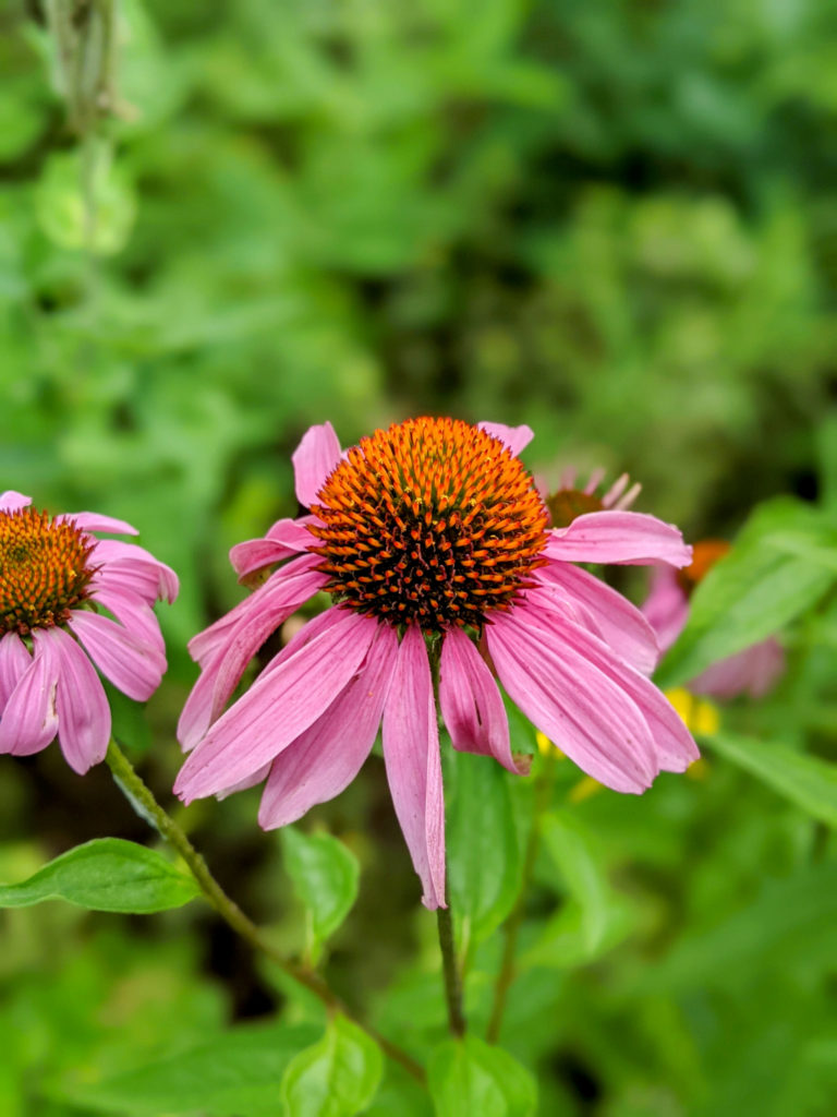 Near the parking lot and bathrooms is a pretty perennial flower garden with a fountain, done up in honor of someone’s mother, if I remember correctly. Look for the rampaging mint between the flower plants.