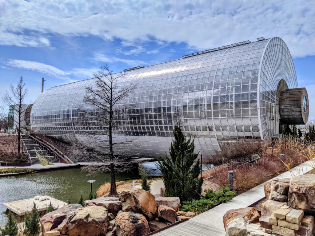 The Myriad Botanical Gardens are right in downtown Oklahoma City, a city block remade into a beautiful and varied garden and event space. And in the middle is the stunning Crystal Bridge Conservatory. The conservatory is closing at the end of April until winter 2022 for a complete overhaul. So if you’re nearby this month, make sure to stop by before they close it!