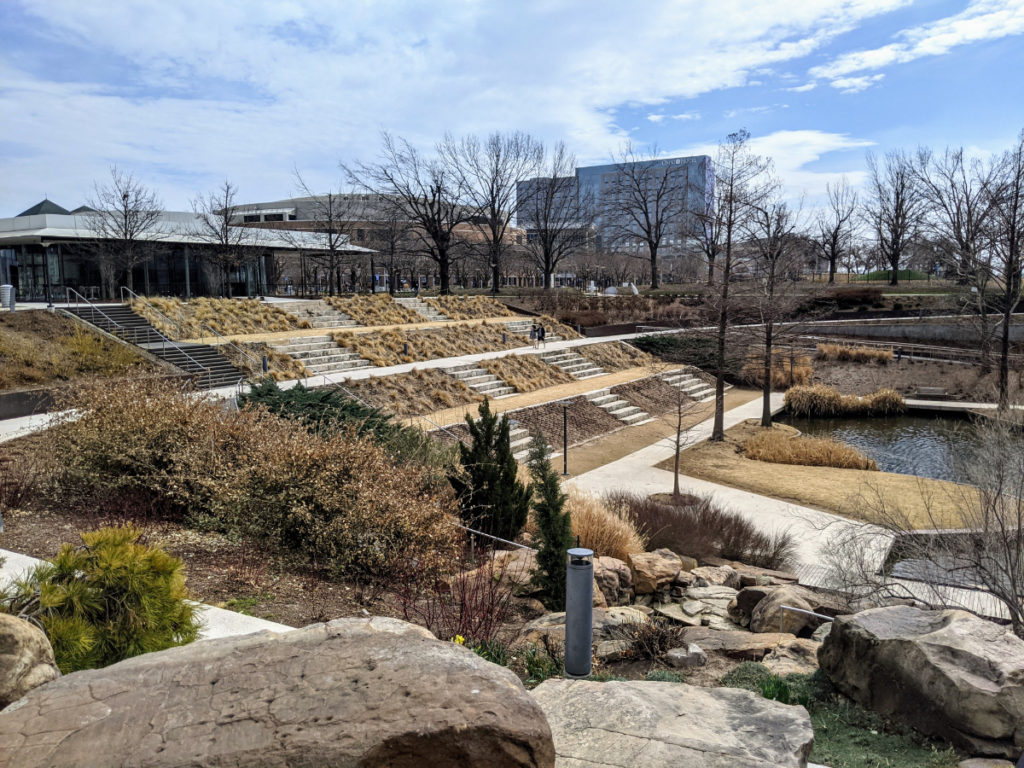 Part of that openness comes from all the garden spaces in the city. The site of the bombing is now an open memorial (plus an excellent museum.) Then, just a few blocks down is the Myriad Botanical Gardens which takes up an entire city block. Down from that, there is the new Scissortail Park, which is 2-3 times bigger than even Myriad Gardens and has a cool color-changing pedestrian bridge over the highway to connect to even more park space.