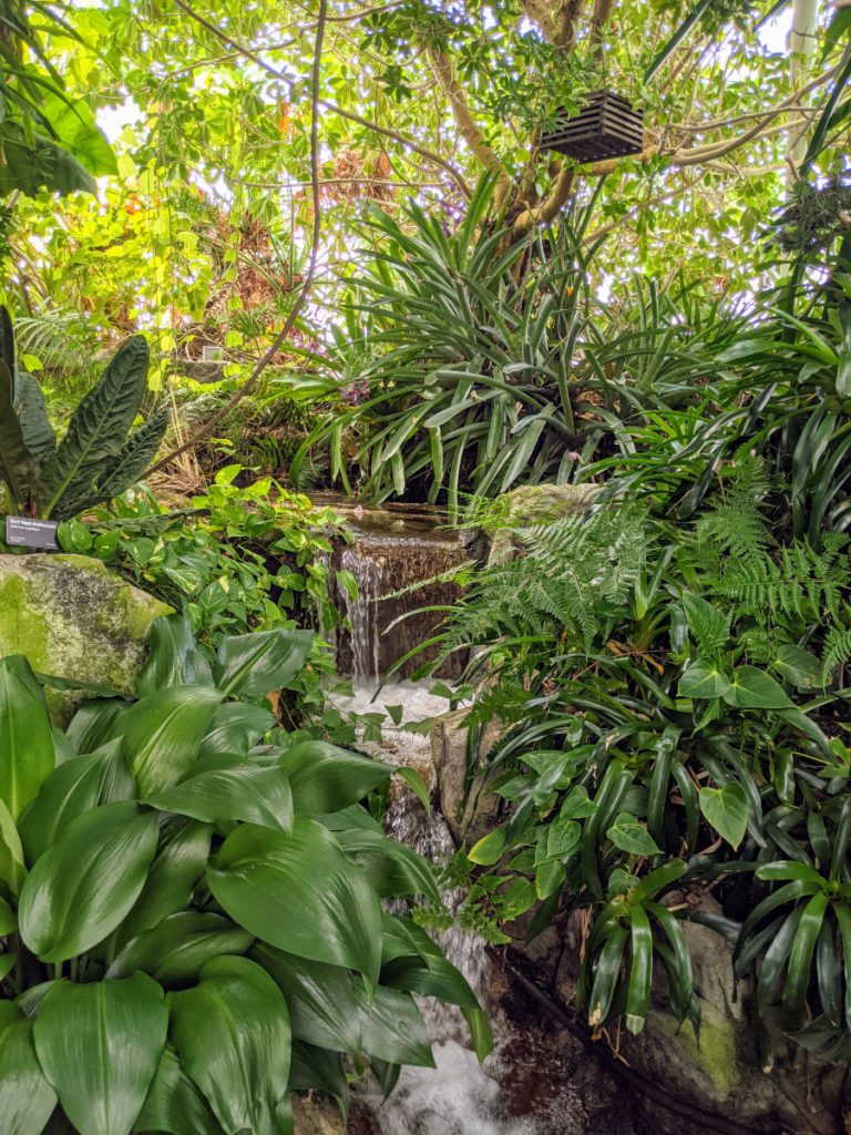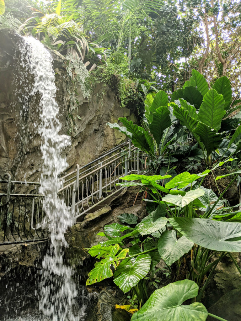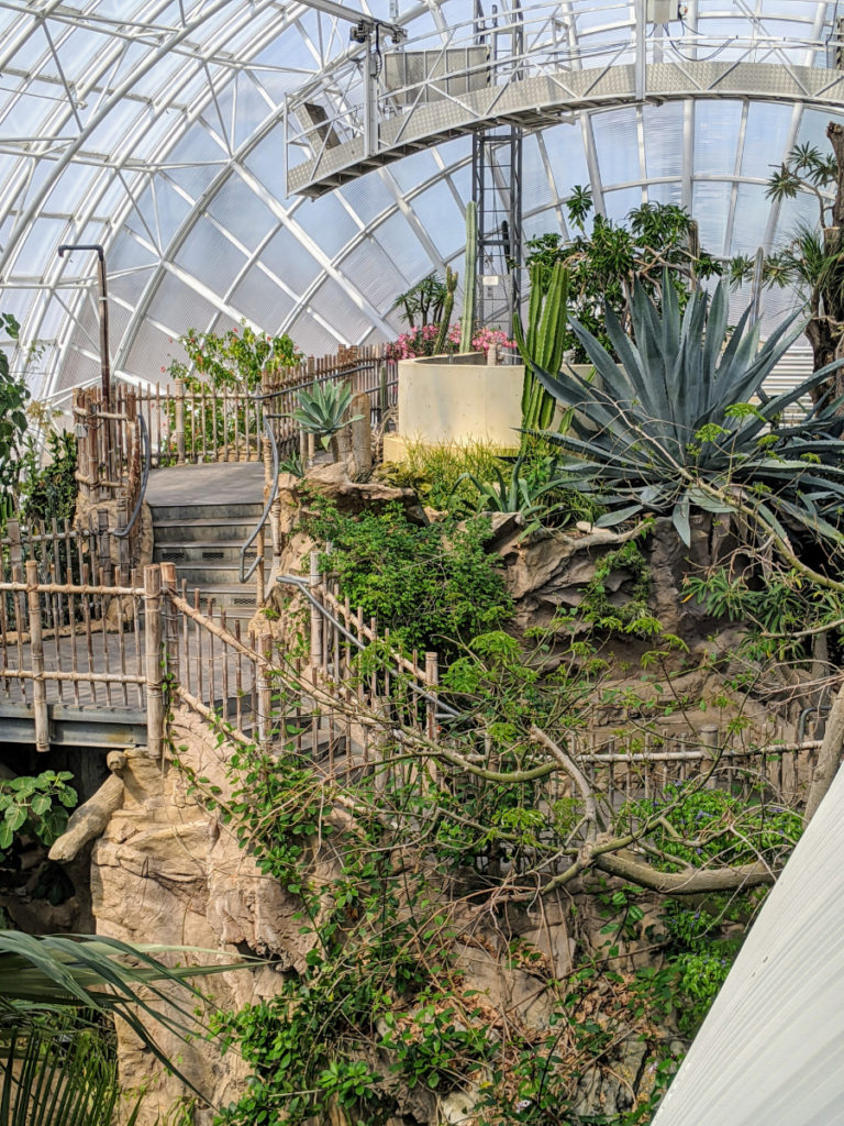 AND, while one side of the conservatory is tropical rainforest complete with waterfall, the other side is a dry desert! You see this best from the sky bridge. Most of the desert plants are planted in rockwork around the stairs on that end.