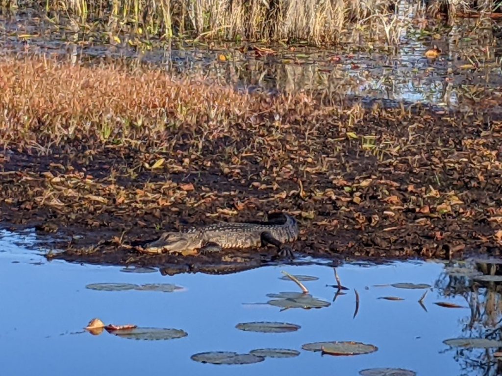 And that’s not to mention the main draw, the alligators! We saw several gators sunning on sections of peat that had floated to the surface. I guess there’s no guarantee you’ll see an alligator on every tour, but the guides seem to know where they like to hang out.