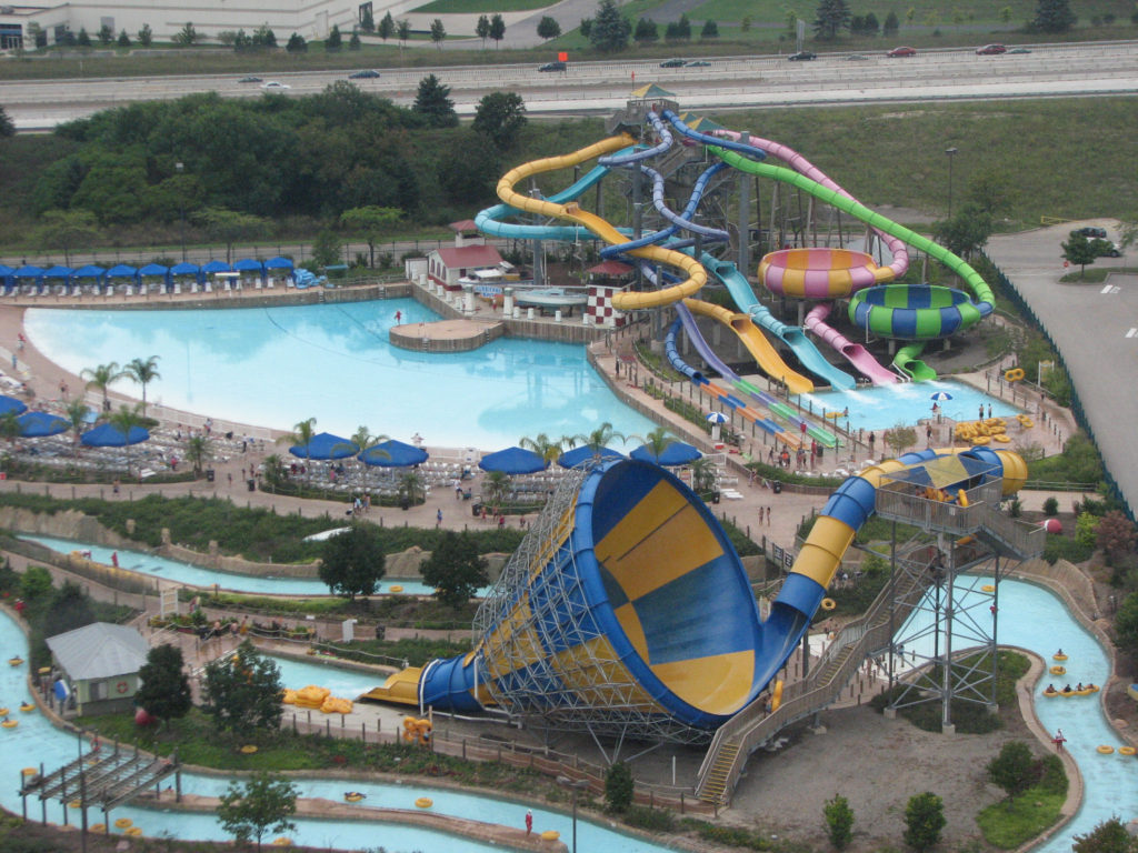 - Raging Waves in Yorkville (about an hour west of downtown Chicago) is Illinois’ largest water park – by land size, I assume. There, you’ll find 14 big slides, lazy river, wave pool, and three tot areas, plus a big sand play area. A ticket for any day this season costs $55, pick a specific day, and it’s only $30. Parking is $10 is you buy online, $20 at the gate.