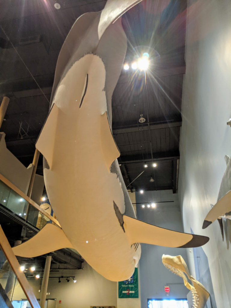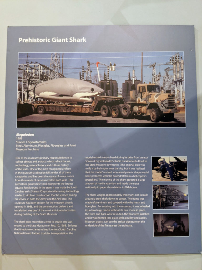 Moving through the doors behind the second-floor mezzanine, you start to get to the real meat of the museum’s collection. Right away, you face off with a massive megalodon shark hanging from the high ceiling in the prehistoric South Carolina section. This floor is all about natural history.