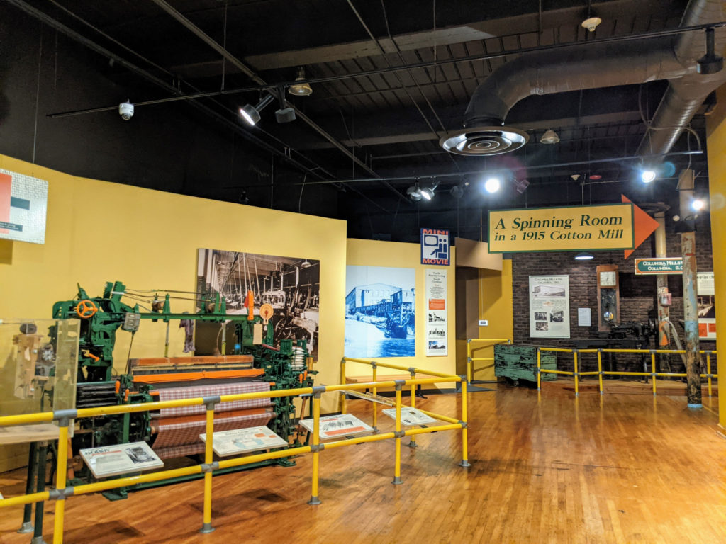 Tucked back behind the train is an exhibit on South Carolina textiles. There are big looms and a mini-movie about the cotton mill you are standing in. A mirrored room makes it look like you are standing on the vast factory floor.