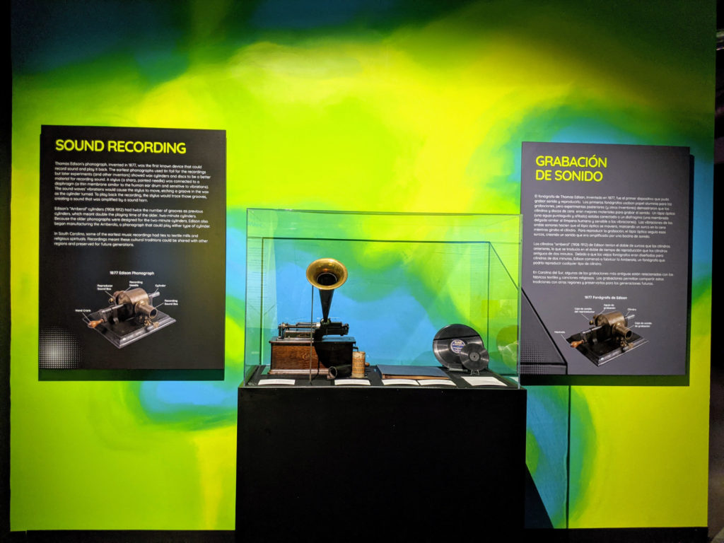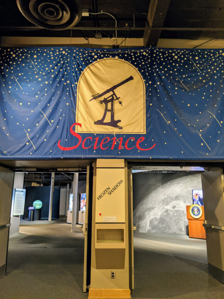 Past early electricity, there’s a whole science section. The hallway leading to it displays several optical illusions you can touch and play with. A little room to the side has a motion-sensor projector, where if you move around, the image on a large screen changes, like a big pinboard. A larger theater has a longer video about the inventor of the laser, a South Carolina native.