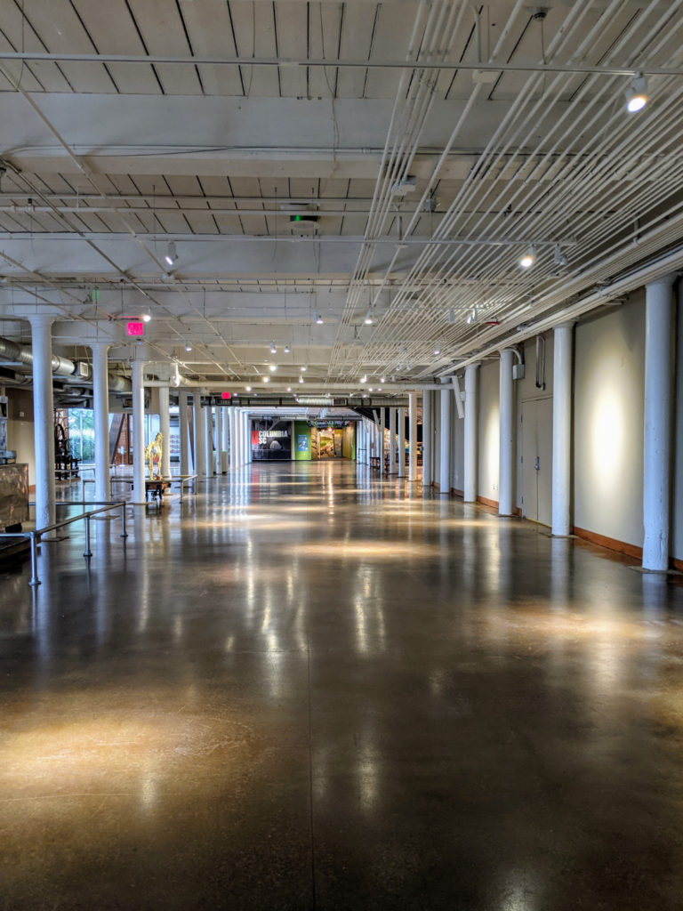 The South Carolina State Museum is located in an old cotton mill. This means there are a lot of big open spaces, exposed brick, and work-scarred wood floors. It’s actually pretty cool, but it is a huge building. Walking in the front door is a big open space, with the admission desk tucked next to a large gift shop. (Take note of the old factory time clock nearby.) A big staircase leads upstairs, or there are elevators tucked behind the far wall.